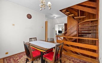 Dom o powierzchni całkowitej 144,5 m² (pow. użytkowa 115,25 m²) to środkowy segment w zabudowie szeregowej z 1981 roku, posadowiony na działce o regularnym, prostokątnym kształcie.