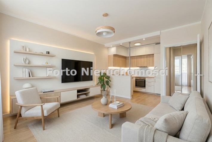 Salon z aneksem kuchennym stanowi jasną przestrzeń dzienną z wyjściem na balkon, idealną do odpoczynku i codziennego funkcjonowania. Drugi pokój świetnie sprawdzi się jako sypialnia, pokój dla dziecka lub gabinet. Do dyspozycji jest również łazienka z WC oraz przedpokój z miejscem na zabudowę szafy, co pozwala na stworzenie dodatkowej przestrzeni do przechowywania.