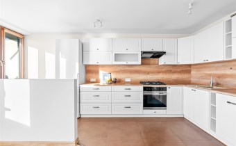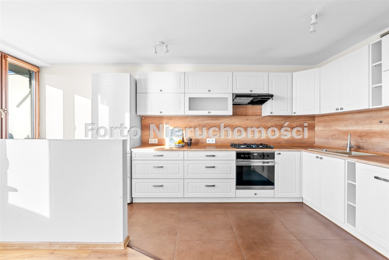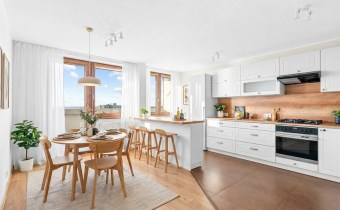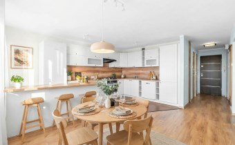 Strefa dzienna została zaprojektowana z myślą o wygodzie – kuchnia z nowoczesną, jasną zabudową i pełnym wyposażeniem AGD harmonijnie łączy się z jadalnią, tworząc idealne miejsce do wspólnego spędzania czasu.