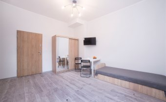 Lokal składa się z pokoju z aneksem kuchennym oraz łazienki z WC.