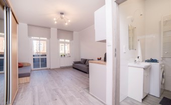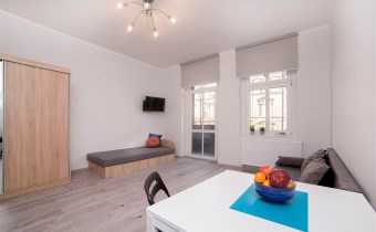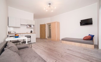 Pokój dzienny z balkonem oraz aneks kuchenny