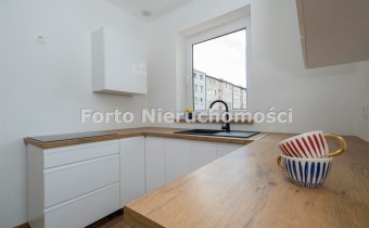 Kuchnia wyposażona jest w nową zabudowę kuchenną wraz ze sprzętem AGD. Pozostała część mieszkania pozostaje do własnego umeblowania.